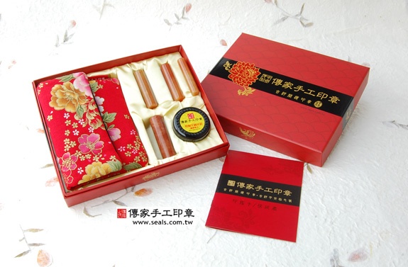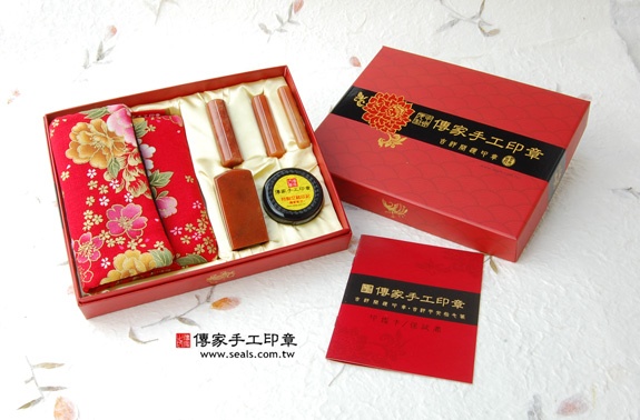 2. 傳家手工印章━「新疆紅玉日本/韓國公司開運印章的實際成品」。包含: 新疆紅玉日本/韓國印章、全手工印章外出袋、印泥、傳家手工印章的保證書、精美中國風的印章外盒(印盒有四大風水神獸:左青龍、右白虎、前朱雀、後玄武)。